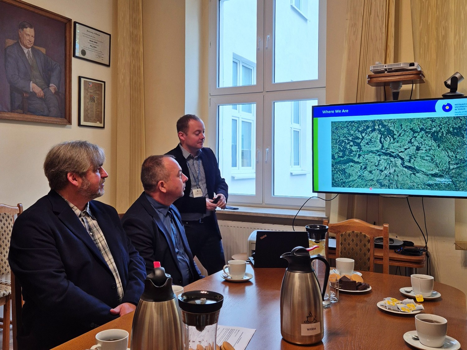 W dniach 21-22 października 2024 r. gościliśmy w Toruniu dr. Mariusa Maskoliūnasa i dr Editę Stonkute - przedstawicieli Instytutu Fizyki Teoretycznej i Astronomii Uniwersytetu Wileńskiego i Obserwatorium Astronomicznego w Malatach na Litwie, Rugilė Balčiūnaitė z Muzeum Uniwersytetu Wileńskiego oraz dr. Linasa Šmigelskasa z Litewskiego Muzeum Etnokosmologii.